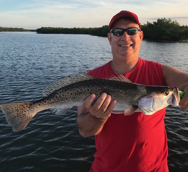 Spotted Seatrout are an every trip, year round fish here in my area of the backcountry, many schooling size fish are widespread through the area, and better size specks are also a regular catch, longtime client Joe from Tampa with one of the nice Trout from a recent live bait trip, this “over the slot” fish was released ………………