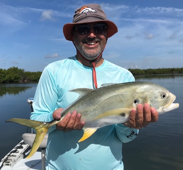 ……..and Martin hooked up a 5 lb Jack Crevalle sight fishing with an artificial lure out of a school of surface striking jacks chasing mullet ……………..