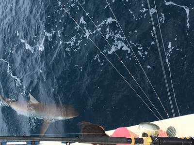 Our goal at Lady Pamela II sportfishing is to put fish on the hook, and/or in the boat. We try to select the best baits, and put our anglers in position to catch fish. However, we are glad to target specific species, or putout anglers on the biggest fish around. When it comes to big fish, sharks are at the top of the list, and the silky shark, our fish of the week, is one species we catch at this time of year. Yes, they get their name from the smooth and silky texture of their skin, but don't be fooled, they are aggressive predators of tunas, octopus, and squid. Silky sharks (Carcharhinus falcidormis) grow up to 12 feet long and over 700 lbs. The biggest one we tagged and released so far was 10 feet long and weighed an estimated 500 lbs. Silky sharks hunt together in packs, so if we hook up one, the odds are pretty good that we will land two or more.