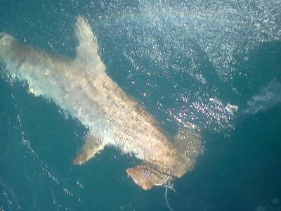 After about two hours into the charter, we decided to target the larger game fish. So we headed to the deeper shark grounds in 375' to 400' of water. We deployed three shark baits, one on the bottom in 370' of water, one at a mid depth around 150' of water and one was located on the surface. Also we set out a kite with three Goggeyeles.