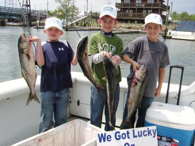 These Kid's had a blast bring bluefish in all day. Thay all got Lucky Carm Hat's today becouse it was nice seeing 3 kid's like that out on the water with there Dad's