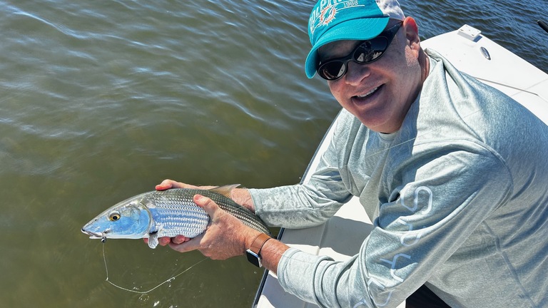 I had Barry again today and we started off fishing for small tarpon but didn't hook any of them. Actually, we barely saw any of them, go figure! Fishing a creek we did find snook where Barry landed one but lost three others when the snook would jump and spit the hook. A few other times Barry had snook hit the lure right next to the boat and we could see their big mouths wide open trying to eat the lure, so cool! We wrapped it up bone fishing where there were tons of bonefish swimming and we ended up hooking three and landing one. With the amount of fish we saw we should have done better but it is what it is.
