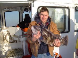 We only had 3 hardy souls on todays open boat trip . Conditions were a bit sloppy in the am and wave hights built throughout the day, but these guys were Ok. Earnest and his 2 pals had 20 very nice keepers between them . John and Anthony had 12 . All nice fish again today between 4 and 10lbs. both whites and greens produced in the deeper water.