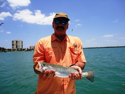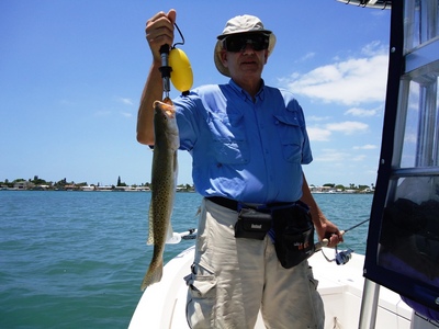 About now Captain Steven was anxious to get his anglers on fish. I moved us to a shallow grass flat with and deep drop off to 10'. Again a slow start then thankfully we started catching trout. Most were beautiful keeper size spotted sea trout with many 18-22". These beauties were thick and clearly eating like crazy. Mackerel made their appearance with one a pushing 26". The bite was on for 15 minutes then off it was like that for an hour.