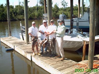 A "Small Craft Advisory" was issued for Shell Beach on Friday. Four members of the Small Craft Advisory Fishing Club came down for a weekend of fishing, fun, and mayhem. Well the weather matched the club name, with winds blowing 20-25. Chris, Gary, Mark, and David all good fishermen knew it would be a tough day of fishing, but the beer was cold and they were not at work so all was good. We started out trying to get close to the outer edge of the marsh looking for Trout. We bounced around a few spots and also chased some birds picking up few keepers, but plenty action. We did not stick with this long since all we were doing was beating up little fish and I hate to do that. We changed gears and headed into the marsh looking for Reds. We made several moves picking up fish at each and the guys managed to put together a nice box of fish in some horrible conditions. Ended up with 13 Reds, 12 Trout, 6 Drum, 3 Flounder, and one heck of a good time. The guys are fishing Saturday in their boat and then back with me on Sunday. I sure hope the wind lays down so we can get back to the Trout slam in the Sound.