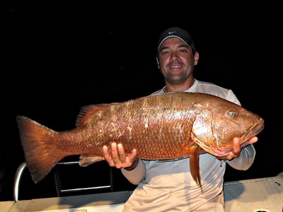 Jorge Marquez seems to love going Cubera fishing with Devon and I. Matter of fact, he booked his first trip with us in '08 and the very first fish that night was a 76 ¼ pounder. I don't know who was hooked deeper, the fish or Jorge! Ever since that night, he books two trips with us every season. Since we had to cancel Saturday night due to residual effects from H'cane Irene, we were determined to get this trip in on Tuesday. We weren't going to let a chance of rain and/or the moon jellies stop us.
