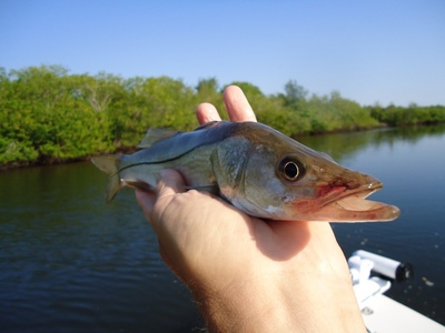 Tampa Bay's eastern shoreline is home to outstanding snook action so I made the 15 mile run NE to the Apollo Beach area with plans to work the south shoreline back to the Skyway Bridge area. Little Cockroach, Little Manatee River, Port Manatee and Bishops Harbor would be the areas I target.