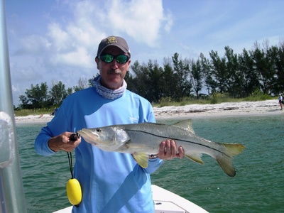 Bait is very easy to chum on the flats around Ft. Desoto and while on the smallish side snook seem to prefer them to larger baits as of late. I often add a float to add weight allowing my clients to cast further. Two tosses of the net were all that was needed to load up the live well. Baits are staying very healthy and frisky in the 75 degree water.