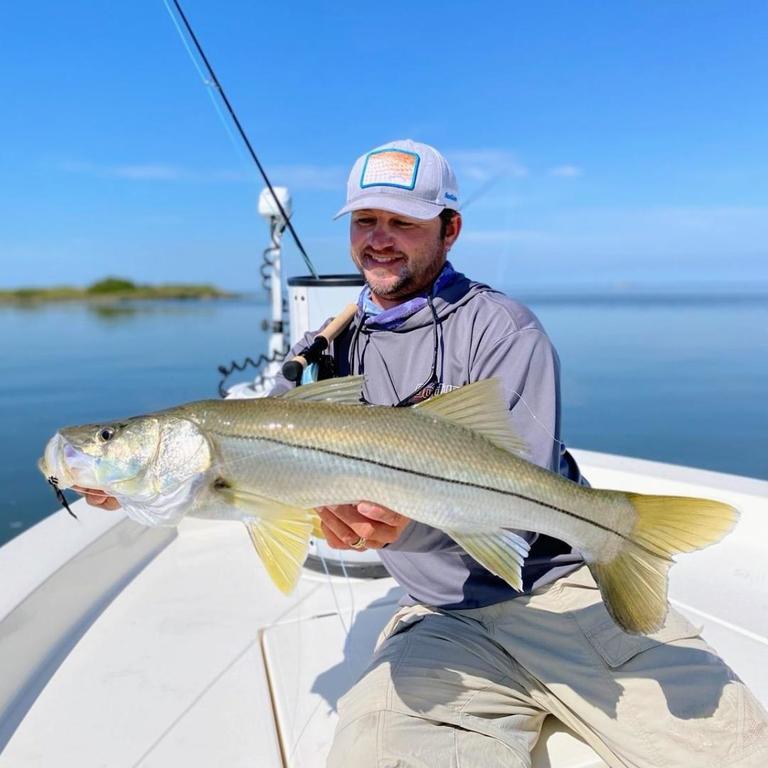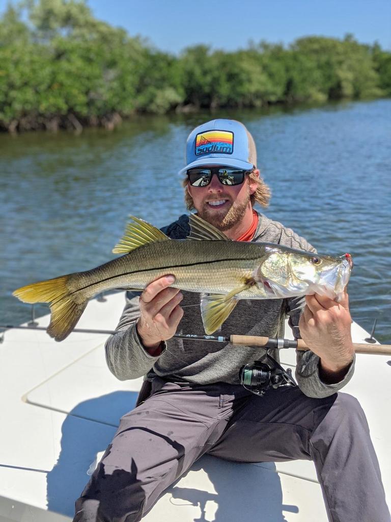 Snook also make for an incredible target on fly as well. The challenge of presenting a fly to a Snook is relatively low but in order to entice a strike the fly has to move in a natural direction in relation to current or structure. When fishing clear shallow water preferred fly patterns include pearl Schminnows, Clousers, and Flats Candies. In stained water all black patterns should imitate the size of the fish fry swimming around. Often smaller patterns tied onto a size one hook or smaller will do the trick and (in my opinion) flash should be minimal. LONG FAST STRIPS ARE THE TICKET, AS YOU DO NOT WANT TO GIVE THE FISH THE OPPORTUNITY TO ANALYSE THE FLY.