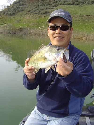 We put the boat in around 12:30, and worked our way up the main lake, jumping from one piece of wood to the next. The water was still quite cold, 54 degrees, so we made sure to work our baits slow. Starting out with Brush Hogs and Jigs, we were unsuccessful. Finally after tying on a 6" green pumpkin senko, rigged wacky style, we picked up a couple. Both were between one and two pounds, quite small for what this pattern can produce, especially considering the time of year and weather conditions. After fishing every piece of wood from the damn to the top of the lake, we made a trip to the back of Packwood Cove.