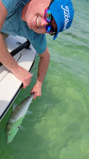 Steve and his daughter Katie jumped aboard as we were facing 20 to 25 mile an hour winds all morning long and although the tarpon would not cooperate I was able to take them to an area out of the wind where they had a blast catching nice drag peeling jacks, big mangrove snappers and a few nice mutton snappers. The big highlight today was Steve catching his 1st snook. Then he told me he had never caught bonefish before. Wait, what? Oh, let's go for it! I looked at my watch and realised I had a small window to try to get his 1st bonefish in the boat. Well as it turns out we hit that spot just right and just a few minutes in the Steve was tight to a solid 8 pound fish that was burning up the drag. After numerous long runs I scooped up the big bonefish, Steve got his glory pictures and we headed back with a solid day of fishing. Congrats Steve!