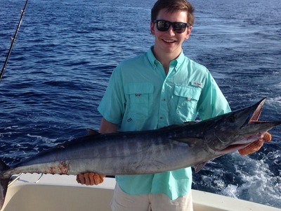 Today was another big bonito day as we caught 30 nice fish in the morning. The Lady Pamela IV then went offshore in search of bigger game, and we found it. We landed a 40 lb. wahoo that took a seawitch feather tipped with a fresh bonito strip. This fish hit the bait like a freight train and then it was off to the races. Nice catch for our anglers.