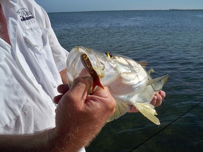 I was on the water several days this past week and found the fish in the mood to eat. The full moon had a little affect on the daytime bite, but overall, the fishing has been great out there. We have continued to start the days in deeper water and finding a variety of fish hanging in five to ten feet of water. Tom Hull was back down from Melbourne and after finding a number of nice trout in the deep cuts, he got slammed by a gag grouper that refused to come up from its lair on the bottom. With some coaxing, he finally got it to come up to release it for another day.