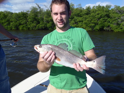A root beer Terror Eyz has worked well for a variety of fish. As the water cools off and the fish head to deeper areas, it gets down to them and they have a hard time resisting it. Try one along the deeper edges of the flats or under the docks and you should have some good results. The pompano have moved into the river and you can try live bait or a Doc's Goofy Jig for them. As the weather lets the surf angler get back out, expect a good bite along the beach.