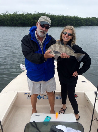 The fishing has been awesome on the river for a variety of species to bend a rod. Redfish, black drum and sheepshead have been our best bite this week. Mike and Karen were out on a windy day that moved us up into the mangroves to fish. They boated three redfish along with lots of sheepshead and drum to top off the morning. Anthony and TJ joined me on a cloudy and windy morning. We again moved to the mangroves to hide from the weather. Sheepshead and drum were biting that morning. Both days we ended up around the turning basin to finish off with snapper and jacks to keep everyone reeling and smiling. It was a good week in spite of conditions.