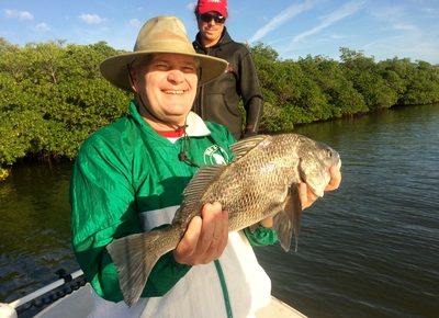 Redfish, black drum and sheepshead have been our best bites most days. DOA shrimp, CAL paddle tails and live bait can find you some exciting action this month around the area. Fishing docks, mangroves and structure around the river has rewarded my anglers with some nice fish for their efforts. Ron, Jessie and Jeremy topped off this weeks fishing by boating 10 slot size black drum and a redfish along with lots of other species. Larry and Charlie also had a great morning by catching black drum, redfish and sheepshead. Tom, Sherry, Andrew and Trevor had the same success on their morning adventure. Jeff, Ryan and Kyle had a rainy, windy day on the water, but caught some nice fish in spite of conditions. It was a fun week on the water!
