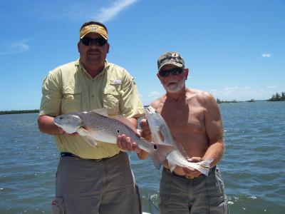 Trout slowed down earlier in the week or at least you could find few places to fish for them. We found one day that we could slowly drift the flats. Paul and Tim caught a number of very nice trout from 18" up to 22" in just a few hours. Most were hitting soft baits and twitch baits for them. Look for clear water flats that hold sandy area around the grasses. A lot of areas were difficult to fish most of the time.