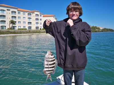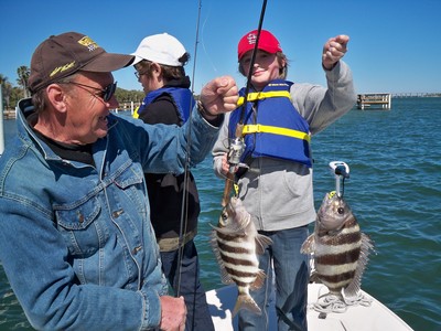 The best bite on the river has remained the sheephead. They are thick around the bridges, docks and structure in the river. Live shrimp or dead shrimp usually works great on those toothy critters. Ron, Denny and Mitch joined me this week on a very windy, cool day. We found lots of sheephead willing to bite. There are quite a few areas that can keep your rods bending while avoiding some of the wind and cold. Don Joslyn took his grandsons, Tyler and Brennan, out fishing with me and the guys found lots of sheephead to keep them occupied. Tyler and Brennan had a fun day. Brennan caught the most, but Tyler caught the largest of the day.