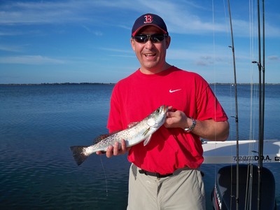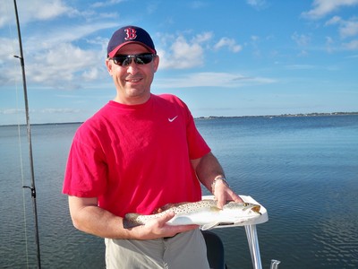We did manage to get out this week on one those calmer days. After having to cancel the week before, Paul Styspeck made it back from Orlando and we found a good day to get out on the water. As soon as we made it to the first spot, we didn't need to move for most of the morning. The trout were once again having a field day on the flats. About forty fish later, it was time to move on. Paul caught more trout than we could try to count. All were slot size or bigger. Most were in the 18 - 22 inch range. There were a few jacks and ladyfish mixed in, but the majority were nice, healthy trout. Shallow running Mirrolures worked good to begin the morning, but the DOA CAL jerk baits kept the reels busy most of the time. Our best fishing lately has been in two to four feet of water on the grass flats.