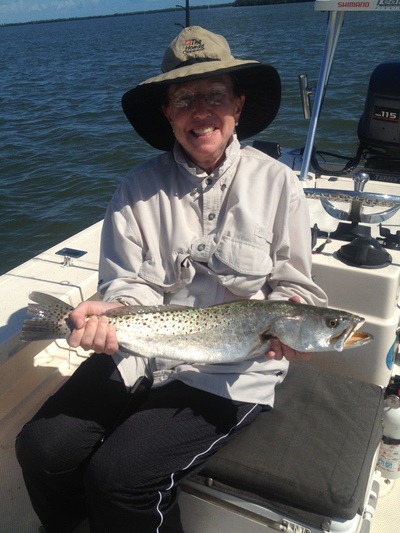 The snook bite has been good for the night anglers using feather jigs and live bait around the jetties, docks and bridges of the inlet. There have been some big jacks cruising around the turning basin this week. Mike and Sharon were out fishing with me this week. Before we went out for some nice trout fishing, Sharon hooked into a big jack that took her half an hour to get to the boat. She was one determined lady! Later she boated some big trout to finish off a good morning.