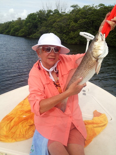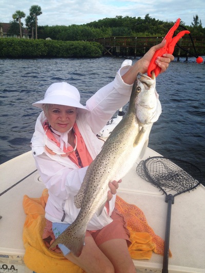 I met lots of great anglers this past week, but Bonnie and Brice had the best day of all. Bonnie wanted to catch a trout and boated a fat 29" one on the shallow flats early in the day. She also wanted to catch a redfish, which she and Brice boated 9 up to 25" around the mangroves for a fun day on the river. Cindy, Leanne and Rhonda were a blast to have on the boat. The guys were talking smack from the other boat to them, but the ladies held their own. Leanne topped off the day with a fat trout. Fred wanted to catch a redfish and boated three that morning. Greg landed three slot reds on his afternoon trip with me. Collin and Dean were out with mom and day for lots of fishing action. Dean boated a nice 20" sea trout, but was topped by mom's. Erin, 25" redfish to end a beautiful day on the Indian River. Every trip ended up with lots of smiles this week. There has been a good variety of fish for us to enjoy with the bite continually improving each week.