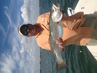 Redfish and trout were our main targets again this week. There are some big trout on the flats and we found our share of them in two to four feet of water. Our best bite has been south of Fort Pierce on the east shoreline. Tim Freeman was back visiting the area and caught two 29" gator trout along with a lot of other fish. Rick and Mickey found another gator on their day out. We have been fishing the sand holes on the flats to find the trout. CAL jerk baits, live bait and top water lures can all get you in on some of the action.