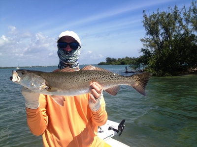 We have enjoyed a good variety of fish this week on the river. Our redfish have come from docks and mangroves. Most have been in the upper slot range. Try a DOA shrimp in the near clear color and fish the docks with the tide. You can bounce it with the tide and it will stay under the dock for you. Snook have been hitting at first light around deeper areas like sea walls and the inlet areas. Try using Terror Eyz in the root beer color bounced along the bottom or CAL shad tails in green back or glow colors around structure in these areas. A Deadly Combo is hard to beat if you are fishing for trout. The trout bite has picked up with the warmer weather and there are lots of big specimens sitting on the grass flats. These are the fish we target in May. There are plenty of other species to enjoy as well.