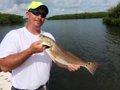 With the warmer water, fish the shallow flats early with top water lures and move to the edges of the grass flats as the sun rises in three to five feet of water when looking for trout. DOA shrimp or CAL shad tails work great when trout fishing. Watch for the glass minnow schools out on the flats. They are super this time of year to help locate trout. Our redfish have been hanging under the mangroves and you have a chance at catching one any time of the day in those areas. There are lots of jacks around the river to bend your rods on when you find them. It's been a wet, but exciting week on the water!