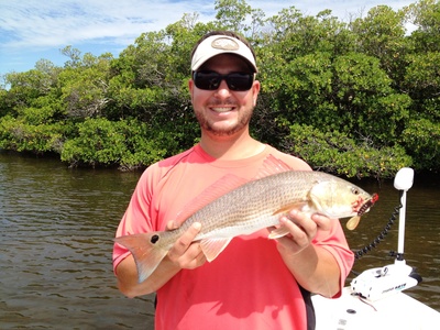 The trout bite has been south of Fort Pierce on the grass flats. Early morning top water can get you some of the better action. Try the DOA Airhead as a top water lure and add a pinch weight when sun rises for slow sinking action. Mike and his son had good luck using a Mirrodine on the flats. The incoming tide has provided the best bite. The redfish have been hanging under the mangroves. I like a CAL grub tail around those areas. It's small and won't scare the fish when casting under the mangrove trees. There are still lots of snapper around the docks, bridges and channel edges. Snook fishing has been good around the jetties and you can also catch them along the beach this time of year. Fish clean water and you will have your best success!