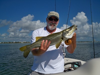Top water has worked very well in the early mornings. It produced redfish, snook and trout this week for us. Fish the docks, glass minnow pods or along the channel edges to get your results. I did find some nice redfish up on the shallow flats in one to two feet of water at midday this week. A couple were even tailing for a change. DOA shrimp works best in shallow water for redfish. My largest was a healthy 29" this week. Try around the Moorings or north of Harbor Branch for redfish or the docks south of Fort Pierce.