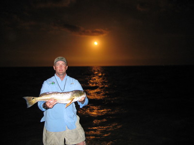 November 14th, 2008...The winds were out of the South at a steady 15 knots, the cloud cover was minimal and the temp was a comfortable 80 degrees. However this did not slow down the bite on redfish towards the afternoon sunset. Several reds were landed but one was kept for this beautiful photo of the Space Shuttle Endeavour's lift off Friday night at 755pm at NASA. The fish was caught on the north end of the Mosquito Lagoon after being sight fished with a live shrimp and was released after the picture was taken.