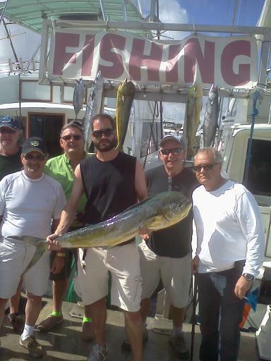 As I greeted all the captains when coming on board, we discussed the type of fishing we were going to do today. They were planning a fish fry tonight before leaving to go back home tomorrow, so our plan of attack was to capture Mahi Mahi's. Winds today were out of the east at 10 mph, seas 2-3 ft., temperatures were in the mid-70's, blue skies, a perfect change from the snow and frigid weather up north.