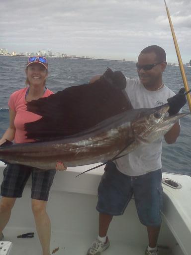 Leslie and Mark Glick from Maryland chartered the Happy Day Today along with the Topshotfishing team to do some deep sea charter fishing in Fort Lauderdale, FL. This was Leslie's first deep sea fishing charter, and made a request for a large fish, preferably a Sailfish.