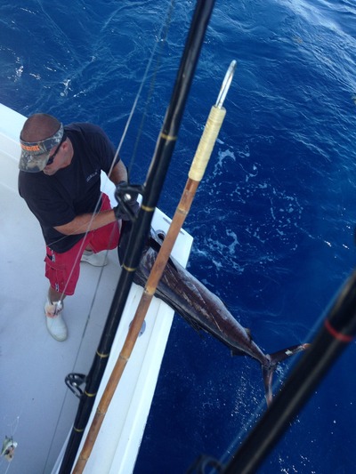 Chris Osker along with his son, Chris, age 12, from New York chartered the Happy Day Today along with the Topshotfishing team to do some father and son bonding on a deep sea sport fishing trip. Winds were out of the east at 7 mph, seas running 2-3 ft., temperatures in the mid 80's – a gorgeous day here in Fort Lauderdale FL.