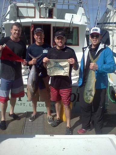 Jesse Deister along with his brothers, Andy and Joe, and friend, Mike Bettencourt, chartered the Topshotfishing team to do some deep sea big game sport fishing in Fort Lauderdale, FL. The boys were getting away from the frigid weather in Ohio to enjoy sunny Fort Lauderdale and fishing. Winds were out of the northeast at 17 mph, seas running 4-5 ft., temperatures in the mid 70's.