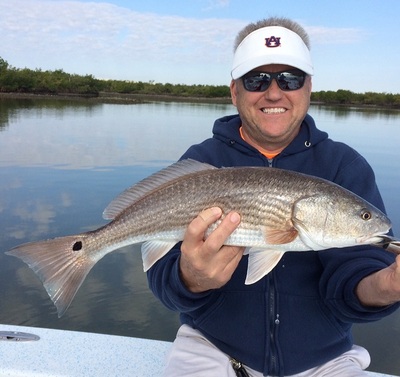 Father son team Doug and Matt from Michigan caught many species on a weathery morning, Matt pulled a good Red off an oyster shoreline on a live shrimp .