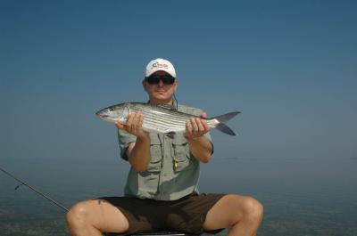 Fishing Flamingo with Andrey Vlasov from Moscow, Russia we were in a lot of small tarpon and lots of reds but no eaters we did land one redfish 25 inches and one bonefish 7 pounds. It was a good day, his first time fishing for bonefish and his first bonefish.