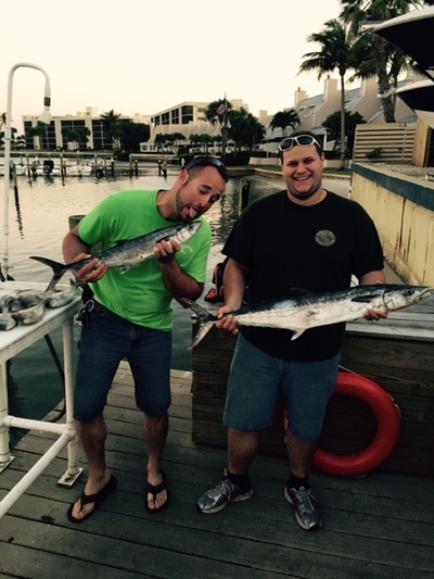 A quick rinse of the boat, lunch, re-bait then back out with Adam and Dave. These guys were a blast to fish with. We set up on the ledge a caught a few kings, and kept the rods bent with some jumbo porgies and vermillion snapper. The sharks were stuffing their faces with our bottom fish. We lost a few nice ones to the sharks. After a full day at sea, feeling blessed to do what I love. We have a few openings in March. Visit wwww.gettinluckyfishing.com to get hooked up on a good time. See you on the water.