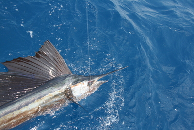 The fishing in the end of April surprisingly slowed down a bit, but luckily it picked right back up in May. There are still plenty of sailfish around. We have been averaging 3 to 4 sailfish per day. Most of these sails are the full grown spring sailfish and are around 50 to 70 pounds. Even after a full season of sailfishing almost done, I still get excited as I watch a sailfish approach the kite bait, eat it and then jump all over the surface. We have also caught quite a few sailfish on our flatline baits and had quite a few more eat the mid depth and even the bottom baits. We had a trip last week were we caught 3 sails and all three came from the mid depth baits. Not only is it prudent to cover all the different depths for many of our species, but kingfish especially seem to love that mid depth bait and there have been no shortage of big kings. On almost a daily basis, we have been catching at least one 30 pound plus king and many smaller than that. This is a great time for the big springtime kingfish and they are not letting us down.