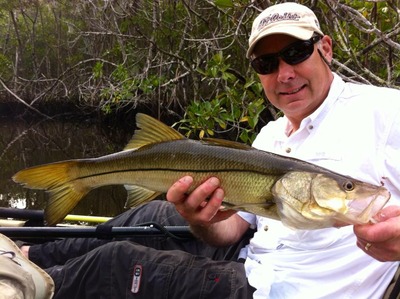 With fewer cold fronts and warmer water temps, Spring like fishing patterns are quickly becoming apparent. Bait has returned to the inshore flats and snook have been schooled up around creek and river mouths and in areas of patchy sand. We've been staking out within casting distance of likely ambush points such as deeper depressions and along edges of sandbars. The water is gin clear in the creeks of the Glades backcountry so it's important to be stealthy and quiet when casting to these snook. We've been successful catching quality fish sight casting to schools laid up on shallow sand bars as well as blind casting into deeper pockets and depressions in the creeks and river mouths. DOA paddle tails rigged on a 1/4oz jig head and Zoom Super Fluke Jr's rigged weedless on a weighted worm hook have been catching these fish.