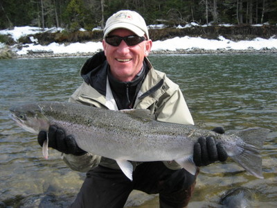 Zymoetz (Copper) River The water is in good shape but very low. Fishing for Steelhead is fair. Reminder: No fishing above the sign at the transmission line crossing (below) Zymoetz Canyon Jan 1 – June 15. You can still fish below the sign all winter. Fly fishing is the choice of many on this river. Wading with quality Simms http://www.simmsfishing.com/ waders and accessories is the way to go. A friend of mine is very happy with his new Islander http://www.islander.com/ fly reel. Trophy XL http://www.redlsports.com/ fly rod, Cortland Line http://www.rapala.ca/ and Maxima Tippet http://wwwbrecksinc/en/maxima.htm completes his set.