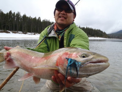 Has spring finally arrived, I wonder as we get pelted with snow while on the water. The groundhogs are playing games for sure this year. We are now into week 2 of our Steelhead season and the fellas from Japan managed to run straight into a nice run of male Steelhead on the spey rods. It was the first time for these fellas to target Steelhead and the fish ranged from 36-38 inches, so weighing in the high teens, very respectable sizes. River conditions are low at best and water temperatures are still in the high 30s to 40F. Afternoon seemed to be our best success as the odd pool had Steelhead rising to warmer afternoon sun beating on the water. The fellas tied a beautiful assortment of flies and I included a collage of the recipes they used. Please see the Photo of the Week at the very top of this report.