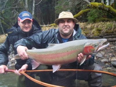 The only way to describe the quality of fishing in the Skeena Region near Terrace right now is very, very good. Water levels have been ideal on some Skeena tributaries, with the perfect "Steelhead green" colour that is often conducive to great fishing. Just ask Paul Catanese's group. After driving to the Kitimat only to find it high and dirty on their first day, they decided to drive back to Terrace to try a Skeena tributary. And well, after catching 10 Steelhead, with 2 fish over 20 lbs, they decided that it might be a good idea to stick on that river. This decision paid off very well for them, as they ended up landing numerous Steelhead, of which 6 were over 20 lbs. Then there is the story about the fish that got away (as hinted at last week)…