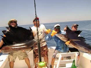 5-15-09 Last but not least Sunny One is boarded by the Saborios who head out for half day of fishing and low and behold return having hooked up and released 4 Sails. A great half day!!!!!!!!!! Later they return to relax in their Luxury Villa with a ton of photos and enough memories to last them until they return next. year. Thanks to all you anglers and hope to see you aboard Sunny One soon
