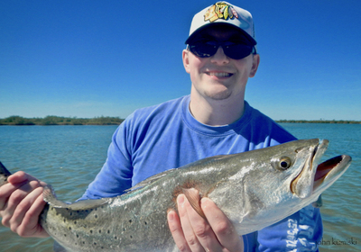 On Monday David Waring and his friends Ryan and Dan, all engineers from the Seattle area, joined me for some Mosquito Lagoon light tackle action. Redfish, seatrout, and black drum, all on either DOA CAL Shad or RipTide Sardines, came into the boat in spurts all day long. Dan posed with a couple of his fish!