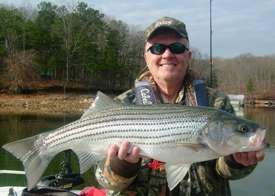 Striper fishing is very good. Its February and the water temperature is in the low 50's. I have never seen the lake water this warm in February. I have also never seen this much bait. There is plenty of bait 30 to 50 feet down over the river and creek channels. The river channel from Gainesville Marina to the Hwy 60 bridge is a prime example of deep water bait. We are also seeing some bait starting to move into the back of the creeks over a 20 to 30 foot bottom. Ada and Gainesville Creek are good examples of what I will call shallow bait. This has been a very good week for free lines. Un weighted lines and lines with a single split shot fished 50 feet behind the boards and 100 feet behind the boat has out fished downrods. I have not had any luck graphing for groups of stripers. Instead I am pulling free lines and down rods where I find the highest concentrations of bait fish. Small baits continue to your best bet. If you can throw the net get some Threadfin Shad and use those. If not, take some medium shiners, very small trout and small herring. Try any creeks with a large concentration of bait. Focus on the creeks and river channel from Flat Creek north to Wahoo. Holly Park area, Ada and Gainesville creek are good starting places.