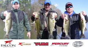 I had the pleasure of fishing with John and Wes from Hayden, AL today. Strong Northwest winds keep us from fishing several productive areas but we still managed to find a few places out of the wind. They caught over 25 fish and missed/lost another 10 fish on a Yum lizard and Xcalibur Xr50. This cold front shouldn't hurt the fishing because the bass are up roaming and looking for a place to spawn.
