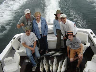 I had Justin Gansowski and his extended family out on the half day trip. After one of his family members finished eating the one banana he had tucked away, we started catching our share of nice sized bass weighing up to 30 pounds. One of the other boats landed a striper that was 46 inches in length and 38 pounds.