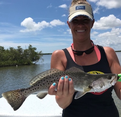 Seatrout are an every trip catch here in the backcountry, Jamie shows off a nice Speck she caught and released……………..