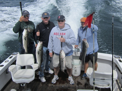 Cape Cod weather is just as fickled as the fishing is. This last week is a perfect example. It seemed it was warmer earlier in the spring than it has been. If it warms up maybe the fishing will get really warm too. There has been a cool down of the fishing in the last few days, especially during the flood water.. We did "OK" out in the deep water but we either used weighted umbrella or jigging with 450 feet of wire. The fish are in 45 to 55 feet of water off the north edge of Billingsgate Shoals. It's a big area called "The Square", a spot that we go to quite a bit during the season.